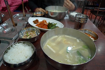 辛~いキムチと熱いスープでますます口の中に火がつき、
